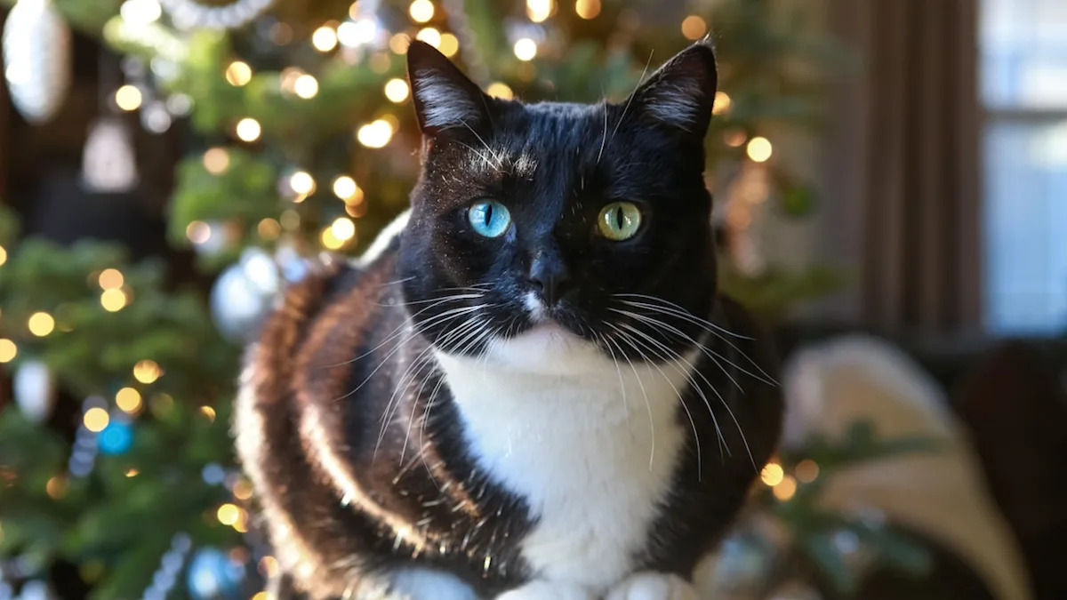 Securely anchor the Christmas tree so it can’t tip if your cat decides to climb it. And if your feline loves exploring like the Tuxedo star of this video, consider checking decorations daily to make sure nothing has been chewed, knocked loose, or played with behind your back.