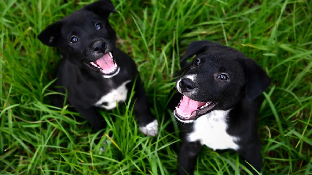 A mixed-breed puppy stands outside in the grass.Image via Unsplash