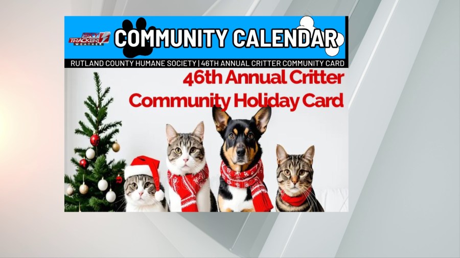The Rutland County Humane Society is putting out the word about the 46th Annual Critter Community Holiday Card. They explain this fundraiser as an excellent opportunity to help homeless animals while also honoring a loved one or simply wishing everyone a happy holiday season. RCHS says that donations are due by December 15th and that the Critter Card will appear in the December 23rd edition of the Rutland Herald for everyone to enjoy. For more information, make sure to visit the Rutland County Humane Society’s website.