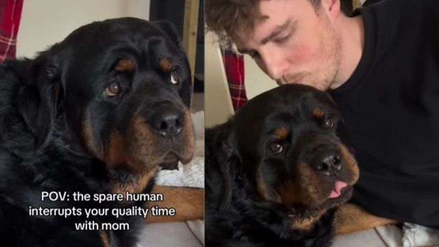 Dog gives ‘spare human’ the look when they interrupt quality time with mom