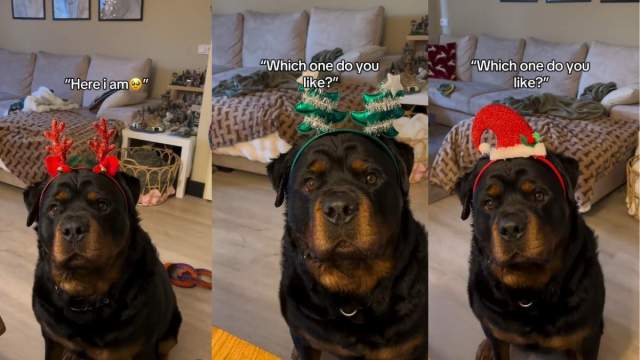 What’s made this video of a Rottweiler take off — tens of thousands of likes and counting — is how genuinely excited Dyce seems about the whole “Christmas tiara showcase.” There’s no sense that he’s being coaxed into it. The second that first sparkly accessory appears, he’s already posing like a pro who knows all his good angles.