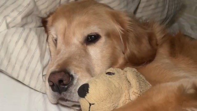 In a cute dog video on Instagram, a Golden Retriever named Ollie has to be forced to go for his morning walk. It begins with the pooch comfortably lying on the bed, hugging a plush toy. His dog mom uses her gentle voice and says, “It’s time to get up, sweet boy.” She reminds him of the time and mentions that it’s getting late.
