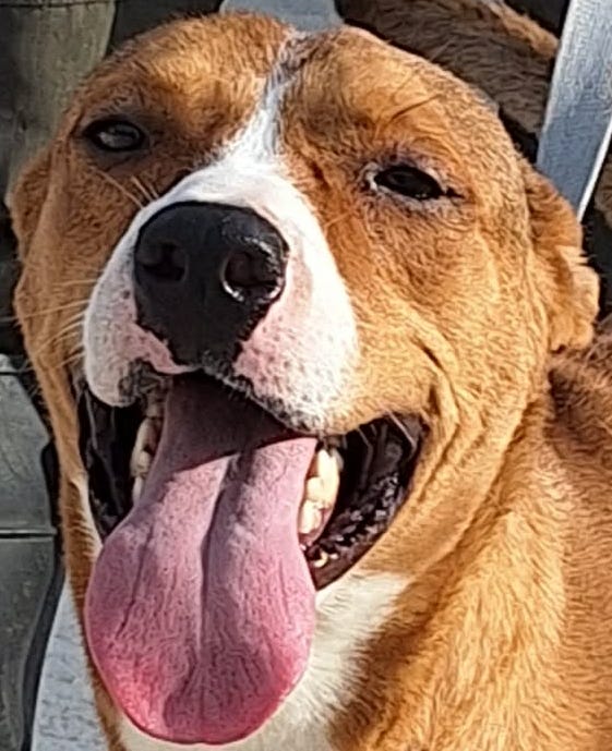 Karma is a 5-year-old female pit bull terrier/Labrador mix dog (ID No. 81553). She is friendly and gentle and loves exploring and learning new things. She is heartworm-positive, but her spirit remains unbroken. She needs a loving home where she can receive the care she needs.
