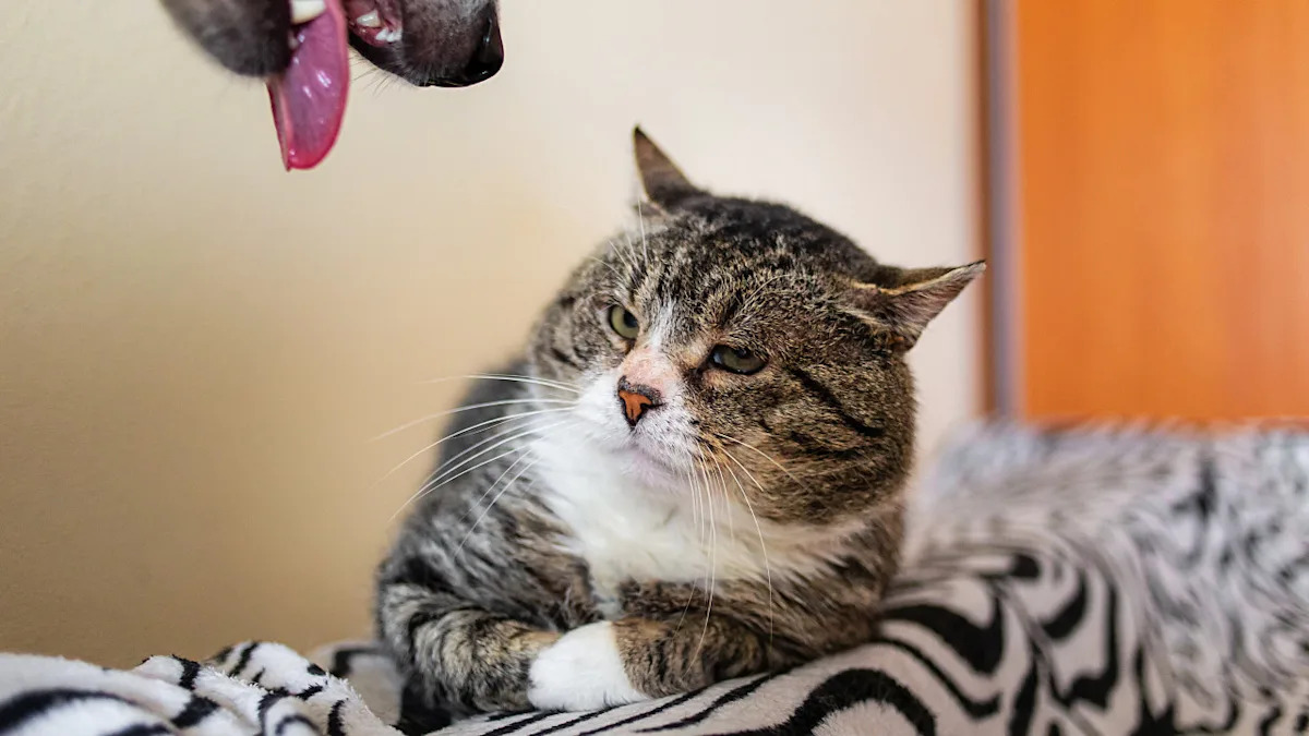 There are two universal truths when you bring a new pet home: puppies think everything is playtime, and cats think everything is beneath them. In this house, a newly adopted golden retriever puppy has decided his cat sibling is his new favorite activity. The cat has decided this is unfortunate.