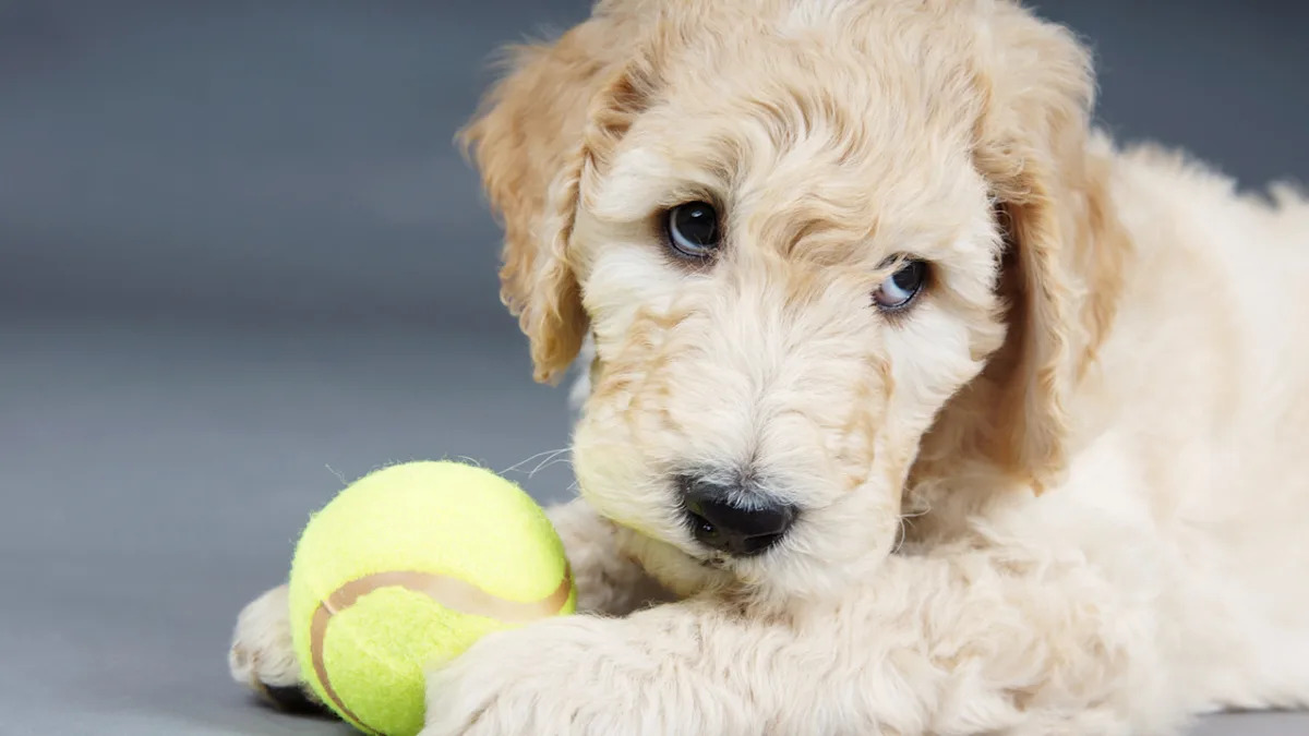 Closeup of a Goldendoodle looking at the camera.Image via Unsplash