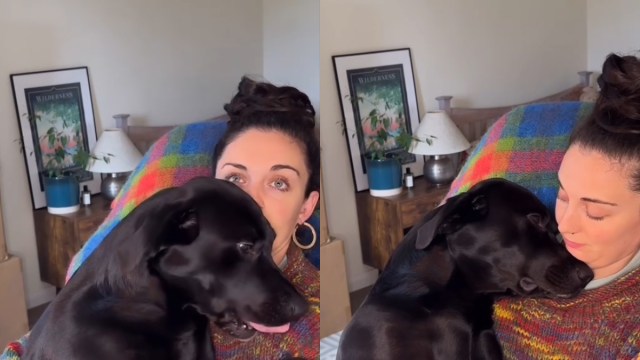 In an adorable dog video on Instagram, a Labrador named Shnootle pretends to be asleep in the pet mom’s lap like a baby. It begins with the pooch climbing onto the human’s lap, claiming that the owner is feeling “lonely.” Then, he showers her with kisses and ensures that she has him to ward off her loneliness.