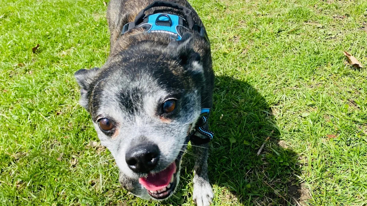 One of his most recent rescues is a senior dog he named Biscotti. She was very scared and suffering from several health issues when Harbison intervened.