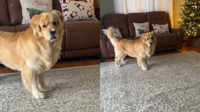 In the video, the Golden Retriever’s owner confronts him, asking, “Do you have a rock?” After a pause, she zooms in closer and tries again, asking, “Dookers, do you have a rock in your mouth?” But Duke doesn’t bark or move. Instead, he just stares back. He stands still like a statue, as if he can pretend to be inanimate to escape the interrogation.