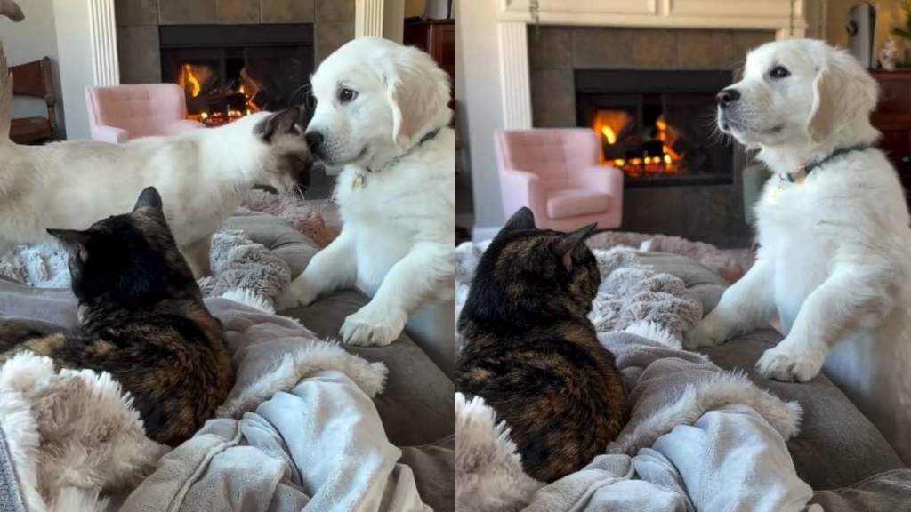 In the comments section of the video, people have been expressing their thoughts on the bond between the two cats and the puppy. One admirer wrote, “That’s just so lovely, Golden Retrievers are beautiful, but I have to say that cat is an absolute beauty.”