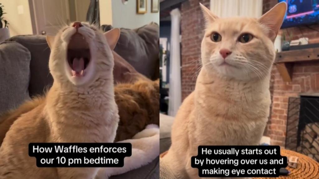 A viral Instagram Reel is proving that some pets don’t just follow routines; they enforce them. In a now-popular video shared by the account @thegoldenbreakfastclub, a cream-colored cat named Waffles makes it very clear that bedtime is non-negotiable, and 10 p.m. means lights out.