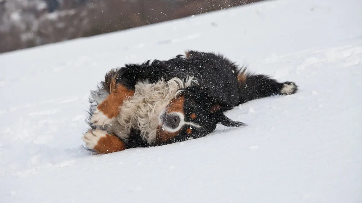 The man filming the video walks to the back door of his house and turns on the outdoor light, revealing Ivy, the Berner, lying down in the snow. The man opens the door, walks out, and tells Ivy, “Come on, it’s bedtime.” Ivy responds by standing up and sprinting in the opposite direction. “It’s bedtime!” the man says again, but with more volume and urgency.