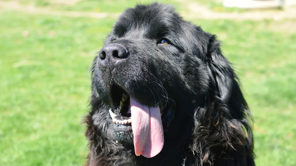 A sweet Newfoundland dog stands outside with sunlight across his face.Image via Unsplash