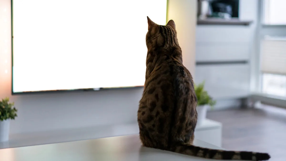 A cat’s brain doesn’t differentiate between TV movement and backyard grass movement. The brain sees motion, the body reacts. If something moves, it must be chased.