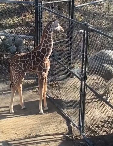 “Rahisi has met the neighbors,” the zoo wrote alongside a video of the two curious animals looking at each other from opposite sides of a fence