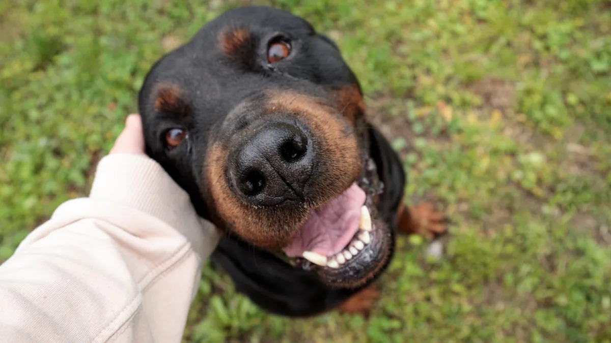 Big Rottweiler smiling outside.Image via Shutterstock / Kaween chanaka