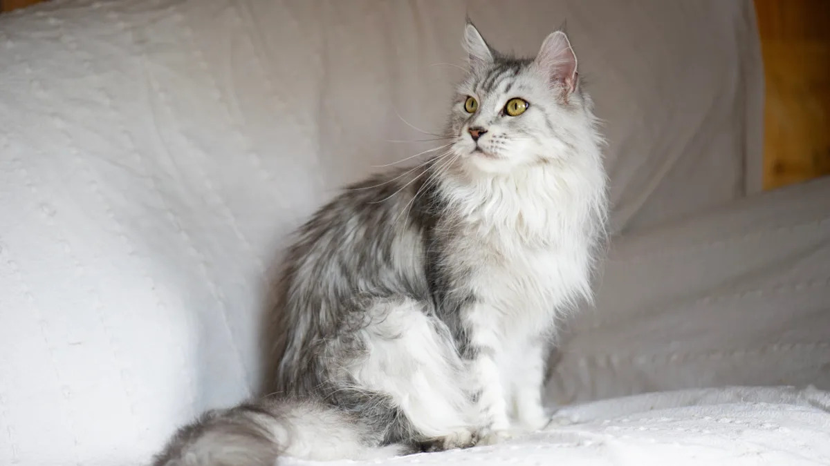 They’re one of the largest domestic cat breeds, with a sturdy build, long fluffy coat, and those signature oversized paws that basically double as built-in snowshoes. They also grow slowly, sometimes taking a few years to reach full size, which feels very on-brand for a cat that likes to take its time.