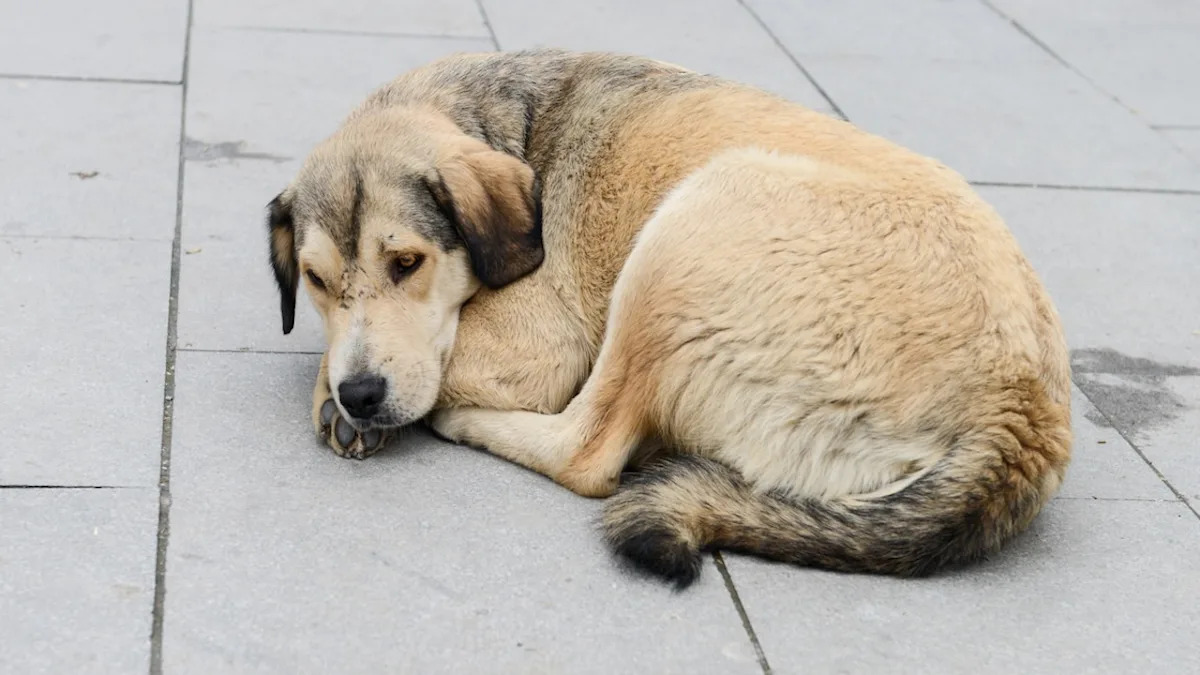 Stray dog curled up on the street.Image via Shutterstock / SaiSuchada