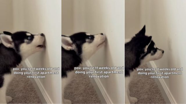 An adorable and hilarious video on Instagram showcased a charming Husky puppy named Nike being busy doing some promising home renovation work on the apartment wall. The video has left the internet in stitches as people can’t get enough of the fur baby’s surprising act. In the caption of the post, the human parent of the pup wrote, “he said the walls needed some work…”