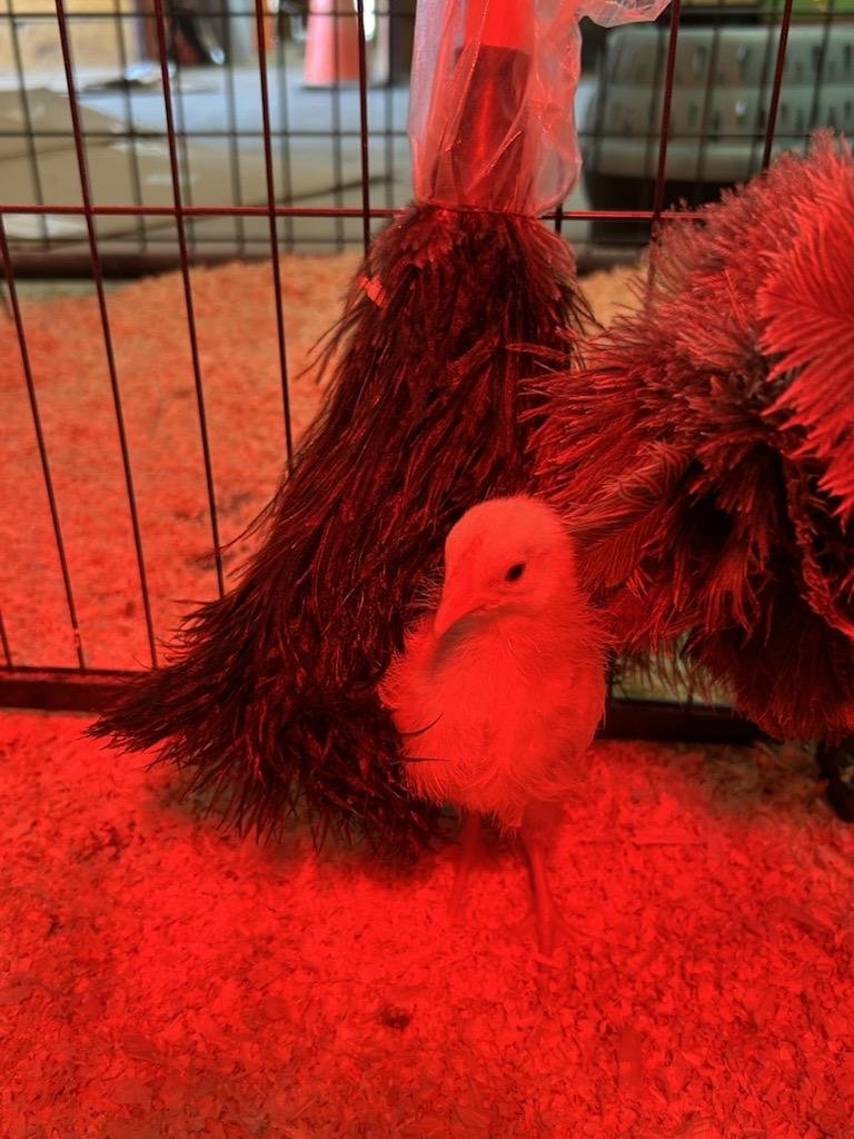 “We set them up in an enclosure with heat lamps and feather dusters to mimic a mama hen, then placed them under the feather dusters. They caught on right away, snuggling in under their ‘mom’ to get warm,” the post said.