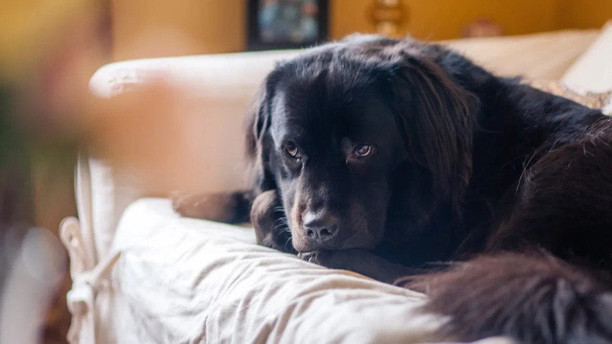 A beautiful Newfoundland dog lying on a green blanket.Image via Shutterstock/Anne Richard