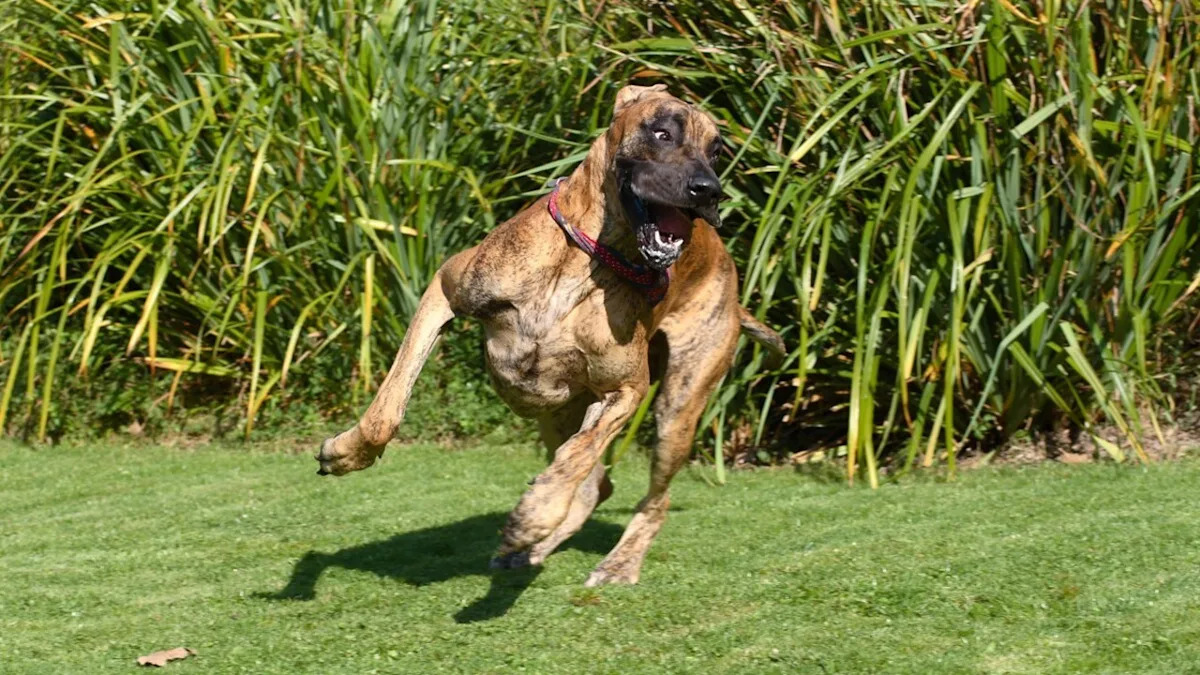 A Great Dane running on the grass.Image via Shutterstock/Metz Eric