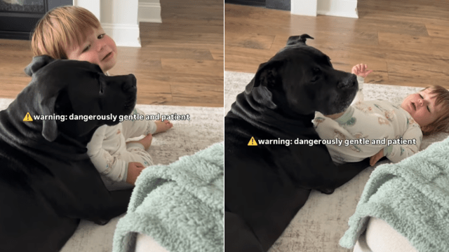 The Instagram video began by giving a closer look at both the big dog and the baby boy. In the meantime, the text written over the clip read, “Warning: dangerously gentle and patient.”