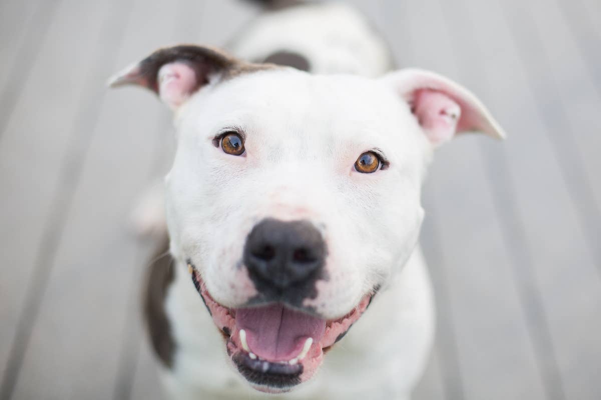 Petey is an American Bulldog who was rescued by his mom, Erin. While he was living in the shelter, Petey barked a lot, and so they put a bark collar on him to get him to stop. Not only did he stop barking, but he also went completely silent.