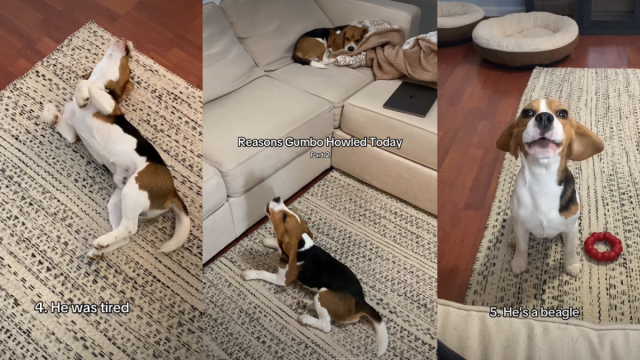 Every dog owner can relate to this moment — the sudden, unexpected howl that turns into a full-blown performance. For this pet parent, the moment quickly turned into laughter as their dog started howling for various reasons. The clip shows a cute Beagle named Gumbo and features the top five reasons why he howled so much in a day. Dogs often howl as a part of communication, social bonding, or in response to certain sounds. However, it looks like this fur baby needs no reason to do it. He clearly enjoys it without any specific trigger.