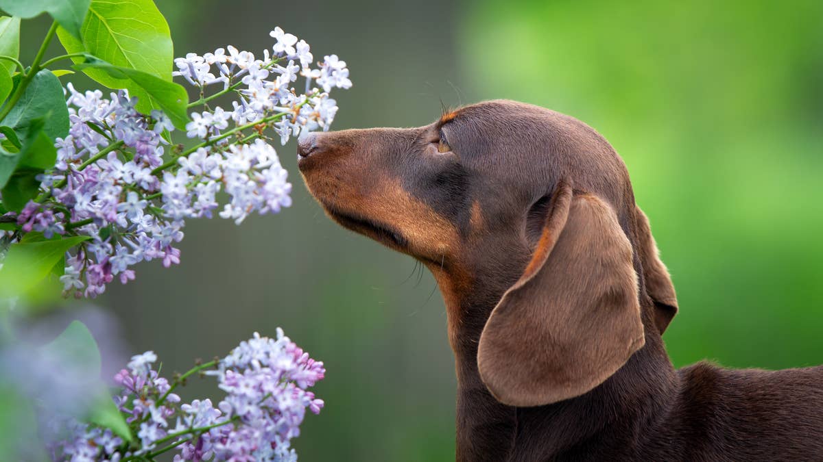 Everyone enjoys the beautiful spring flowers and the trees in bloom, even dogs.