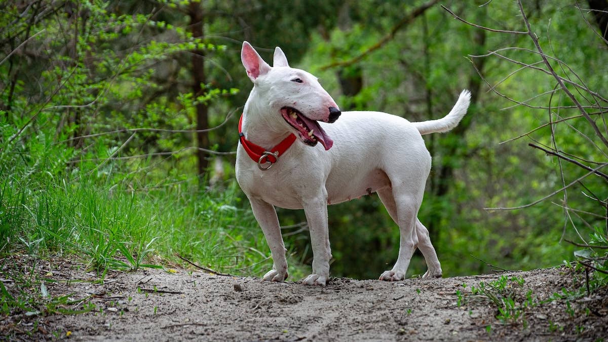 Bull Terriers are a mid-sized breed that does great with kids, other dogs, and even cats in the right circumstances. They’re energetic and excellent listeners, which makes them perfect for: