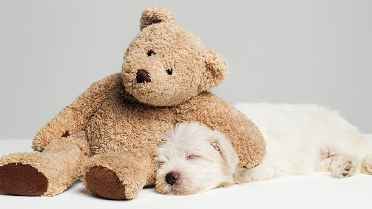 An anxious dog having some alone time with its stuffed animal.Getty Images v_zaitsev