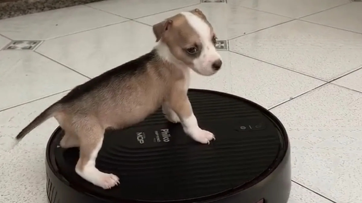 Chihuahua Puppy Hilariously Turns Robot Vacuum Into Her Own Personal Chauffeur